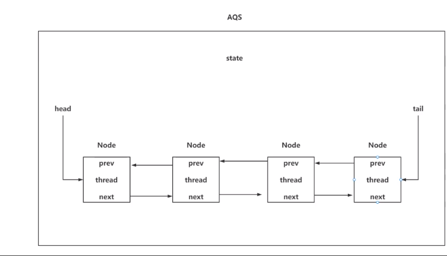 AQS的双向链表是什么? 基于内部类Node实现,Node中包含上一个、下一个、线程;Node类型的头和尾在AQS中维护